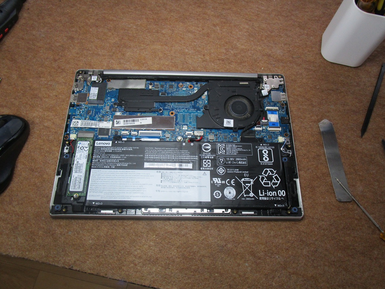 パソコン一旦裏返しにします。